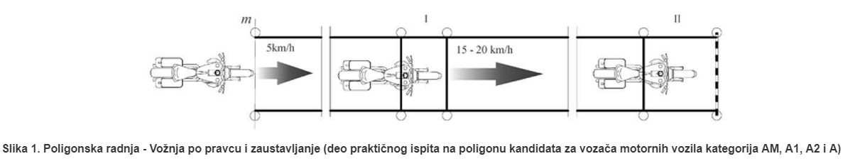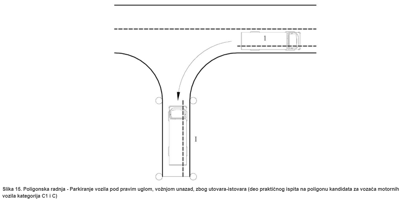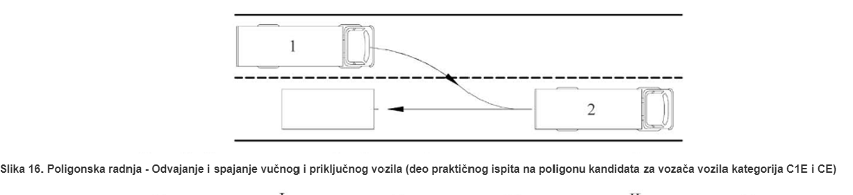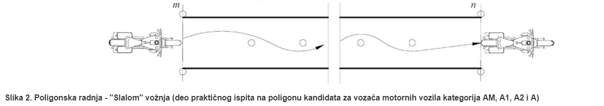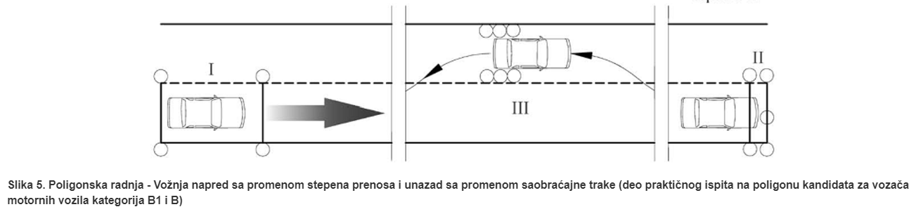 Na delu praktičnog ispita koji se polaže na uređenom poligonu za praktičnu obuku izvode se poligonske radnje na propisan način.