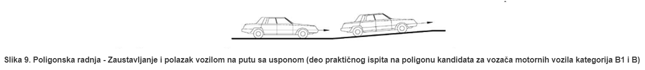 Zaustavljanje i polazak vozilom na putu sa usponom.